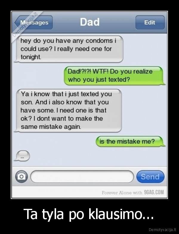 Demotyvacija.lt primena: Duomenys, publikuoti demotyvacija.lt tinklalapyje yra tinklalapio nuosavybė ir negali būti kopijuojami, platinami, perpublikuojami, dekompiliuojami ar kitaip platinami be išankstinio raštiško tinklalapio savininkų ar duomenų autorinių teisių savininko sutikimo. Modifikavimas ar neleistinas naudojimas pažeidžia autorių intelektualinės nuosavybės teises į duomenis.