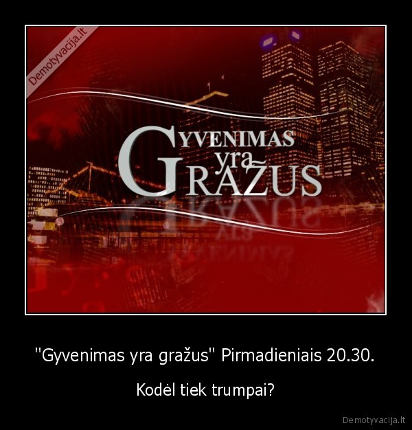 "Gyvenimas yra gražus" Pirmadieniais 20.30. - Kodėl tiek trumpai?Naujausi demotyvatoriai |