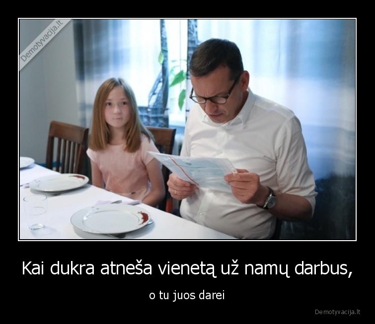 Kai dukra atneša vienetą už namų darbus, - o tu juos darei