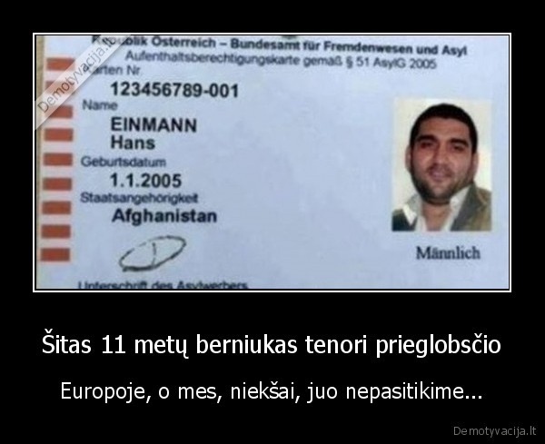 Šitas 11 metų berniukas tenori prieglobsčio - Europoje, o mes, niekšai, juo nepasitikime...Naujausi demotyvatoriai |