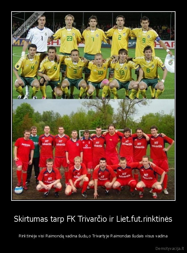 Skirtumas tarp FK Trivarčio ir Liet.fut.rinktinės - Rinktinėje visi Raimondą vadina šudu,o Trivartyje Raimondas šudais visus vadina